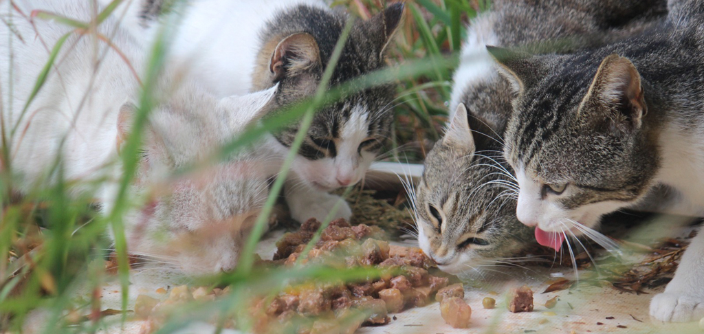 Actualmente contamos con seis gatos fijos, y alimentamos unos 20 gatos más asentados en colonias estables. Todos los gatos que tratamos están esterilizados y desparasitados, además reciben atención veterinaria inmediata cuando lo necesitan.